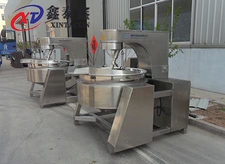 電加熱夾層鍋工作原理:鍋體為半球形不銹鋼鍋,一次性沖壓成型?;旌戏绞讲捎锰厥獾膬A斜傳動(dòng)。它是根據(jù)行星運(yùn)動(dòng)原理研制的,使攪拌器與罐體充分接觸,實(shí)現(xiàn)傳動(dòng)公轉(zhuǎn)和旋轉(zhuǎn)的非整數(shù)傳動(dòng)比。鍋中沒有混合死角。同時(shí),它還具有不粘鍋的特點(diǎn)。非常適合加工辣椒醬,電加熱夾層鍋具有加熱面積大、熱效率高、加熱均勻、液體沸騰時(shí)間短、加熱溫度易于控制、外形美觀、安裝方便、操作方便、保溫放心可信等特點(diǎn),防燙傷等。電加熱夾心鍋厚度可達(dá)4mm,廣泛用于各種食品的加工。也可用于大型餐廳或食堂的湯、煮、燉、粥等,是食品加工中提高質(zhì)量、縮短時(shí)間、改善工作條件的好設(shè)備